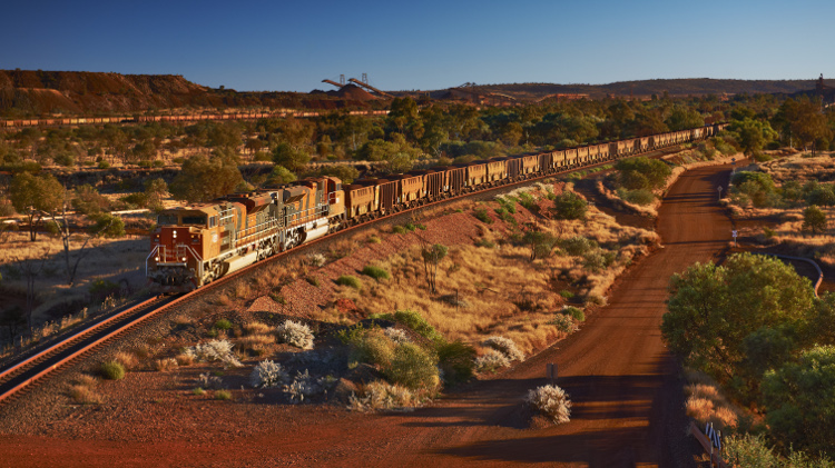 A BHP train carries iron ore from its Newman operation in Western Australia. This week one of its trains was forcibly derailed after "running away" en route to a shipping hub. Courtesy of BHP Billiton