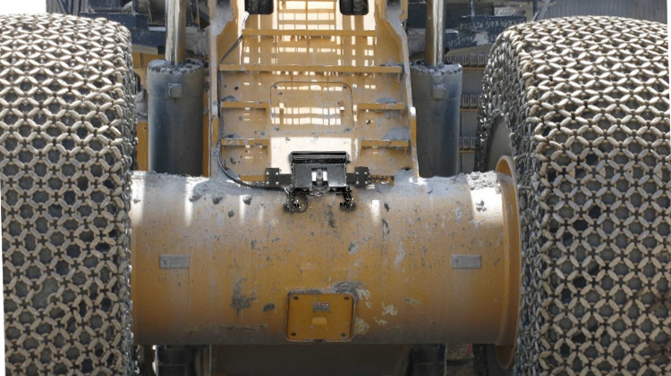 Loaders, on the other hand, are more squat and do not have a boom. The only place a camera can be installed is between the front wheels, with the lens looking up at the bucket. As a result, there is a far smaller window for data-gathering; Cooper estimated it at two to four seconds. Moreover, when positioned so close to the ground and looking up, the camera and LED lights are more acutely exposed to the perils of the harsh mining environment, such as debris, rocks, dirt, mud and rain.