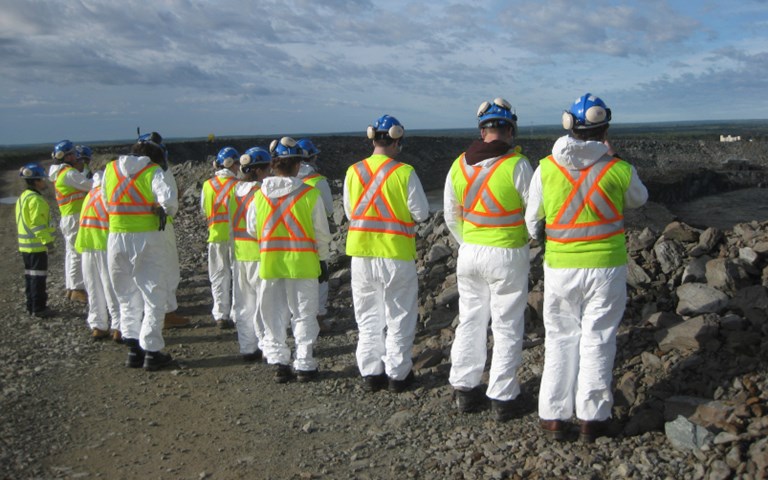 Second year Queen's University mining engineering students on a field trip to an open-pit mine in northern Ontario. Courtesy of Laeeque Daneshmend