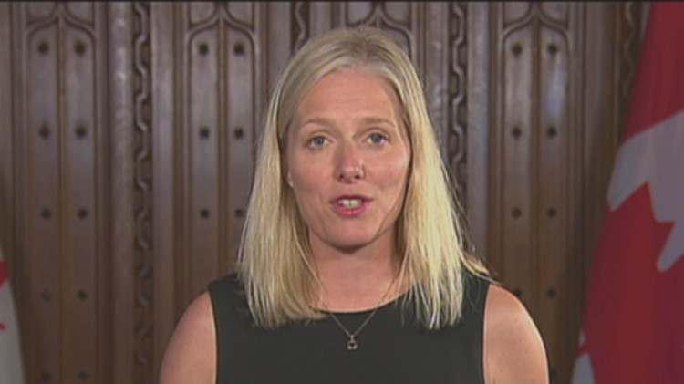 Environment and Climate Change Minister Catherine McKenna first announced the government's two-part carbon pricing program in a May news conference. The draft legislation expands further on the output-based system for industrial emitters. Screencap courtesy of CPAC