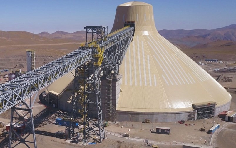The stockpile dome at Teck Metals’ Quebrada Blanca Phase 2 megaproject in Chile, which will start production this year. Courtesy of Teck Metals.