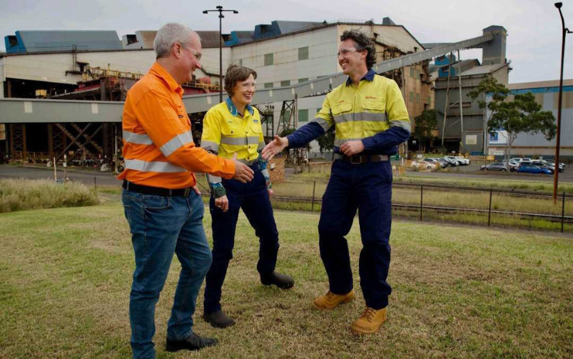 Tim Day, asset president for Western Australia Iron Ore at BHP; Tania Archibald, chief executive of Australia Steel Products at BlueScope; and Simon Trott, chief executive of Rio Tinto. Courtesy of BlueScope.