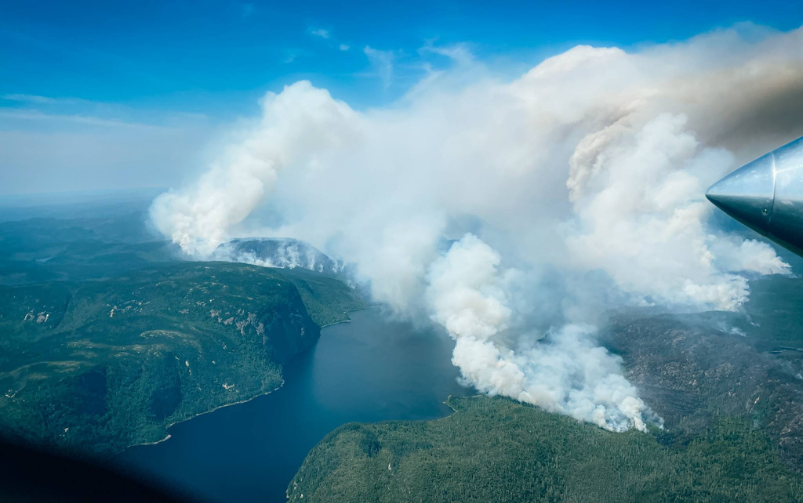 The Iron Ore Company of Canada’s iron ore operations in Newfoundland and Labrador and Champion Iron Ore’s Bloom Lake facility in Quebec have been impacted by the same wildfire. Courtesy of Société de protection des forêts contre le feu (SOPFEU).