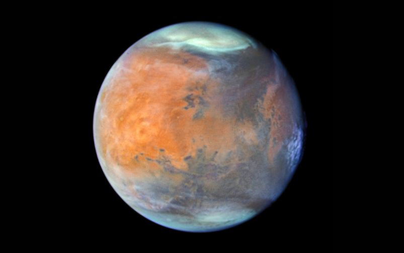 Mars, captured by the WFC3 instrument on the Hubble Space Telescope. This week, researchers reported the possible discovery of a new mineral on the red planet. Courtesy of the National Aeronautics and Space Administration.