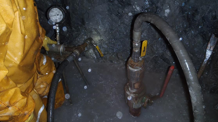 So when hot water, at 80 C, began to flow out of probe holes drilled on the 1,969-metre bench at 500 L/min, everyone was alarmed. Within the next 50 metres, the inflows reached 1,700 L/min, regularly flooding the shaft bottom and bringing air temperatures as high as 45 C with 90 per cent to 100 per cent humidity.