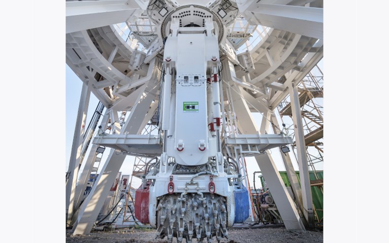 This Herrenknecht shaft boring roadheader at the Sirius Minerals’ Woodside project in England is a secondgeneration design, incorporating lessons learned after the company’s original model was used in Saskatchewan at the Jansen potash project. Courtesy of Herrenknecht.