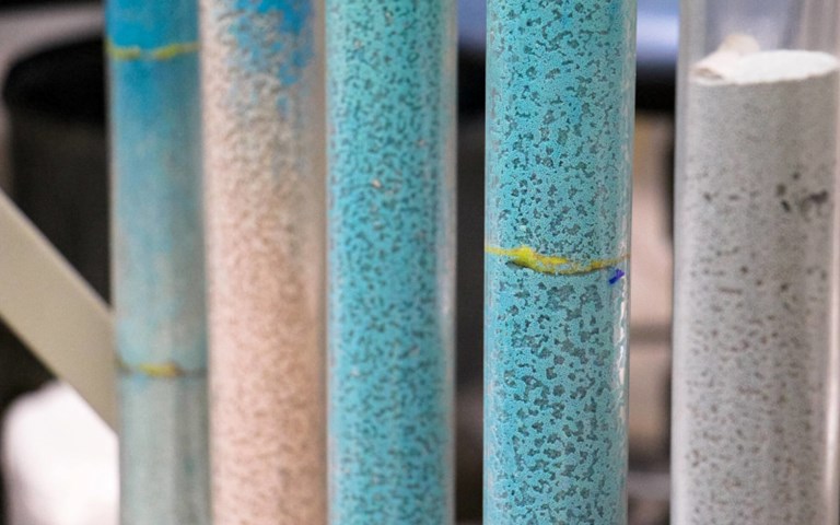 Leaching columns utilizing glycine as the reagent. Courtesy of Draslovka