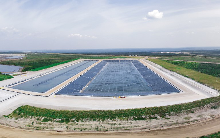 A pilot project in Fort McMurray is studying how contaminants can be removed from tailings pond water via a petcoke filtration process. Courtesy of Syncrude Canada