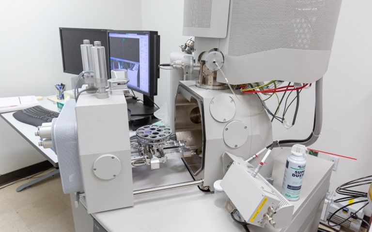 The Saskatchewan Research Council uses data from the Quantitative Evaluation of Materials by Scanning Electron Microscopy system, pictured above, along with data from X-ray micro-computed tomography technology to evaluate the composition of an ore sample. Courtesy of the Saskatchewan Research Council