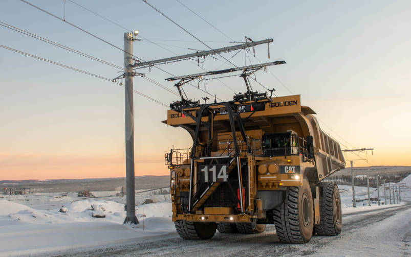 Le nouveau système d’assistance trolley (ou assistance chariot) de Caterpillar, installé sur trois de ses gros tombereaux à entraînement électrique, fournit une source d’alimentation électrique externe sur des portions de routes de transport, contribuant à réduire les émissions de dioxyde de carbone ainsi que les coûts de carburant et d’entretien des moteurs. Ce système utilise une structure fixe équipée de pantographes reliant les camions aux lignes électriques aériennes qui captent l’électricité à partir des réseaux électriques locaux. Les camions peuvent gravir les côtes plus rapidement et consomment moins de carburant. D’après Caterpillar, ce système d’assistance chariot permet d’augmenter la durée de vie du moteur de la machine de 25 % et de réduire les coûts de carburant et d’entretien du moteur de 90 %. Ce kit d’assistance chariots est disponible pour le tombereau 795 AC et est également compatible avec les tombereaux à entraînement électrique Cat 794 AC, 796 AC et 798 AC. Le lancement du produit a suivi un projet pilote qui a mis au banc d’essai quatre tombereaux 795F AC doté de ce système à la mine Aitik de Boliden, en Suède.